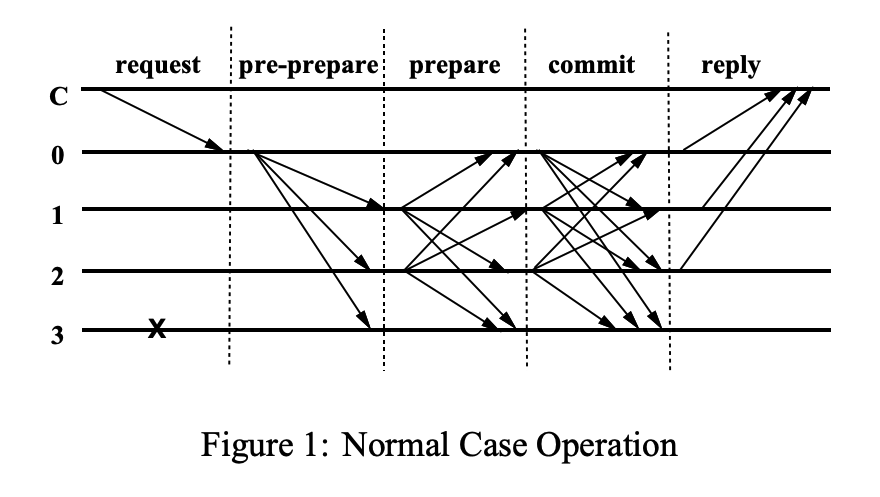 - The primary multicasts the request to the backup nodes in a three-phase protocol. The pre-prepare and prepare phases are used to totally order requests sent in the same view even when the primary, which proposes the ordering of requests, is faulty