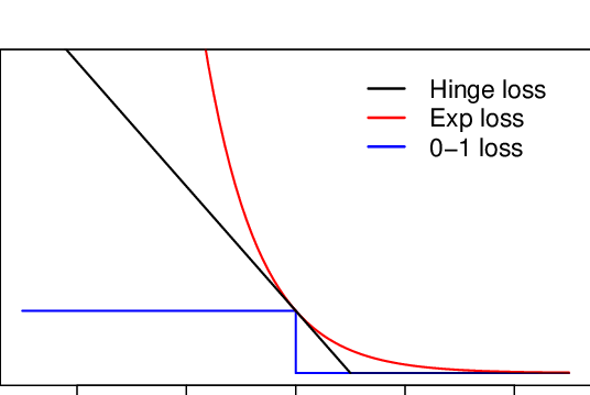 Unfortunately, 0-1 Loss is non-convex. We can, once again, use a convex approximation which is called the Hinge loss: