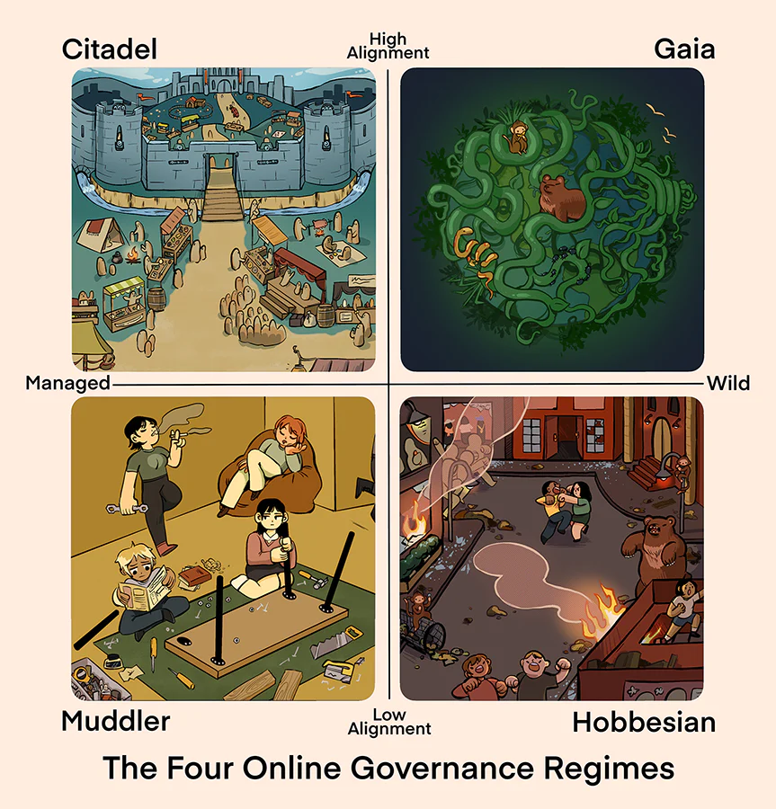 • Hobbesian: Governance ideas responding to wild defaults and low alignment that attempt to foster progress despite conflict and chaos
