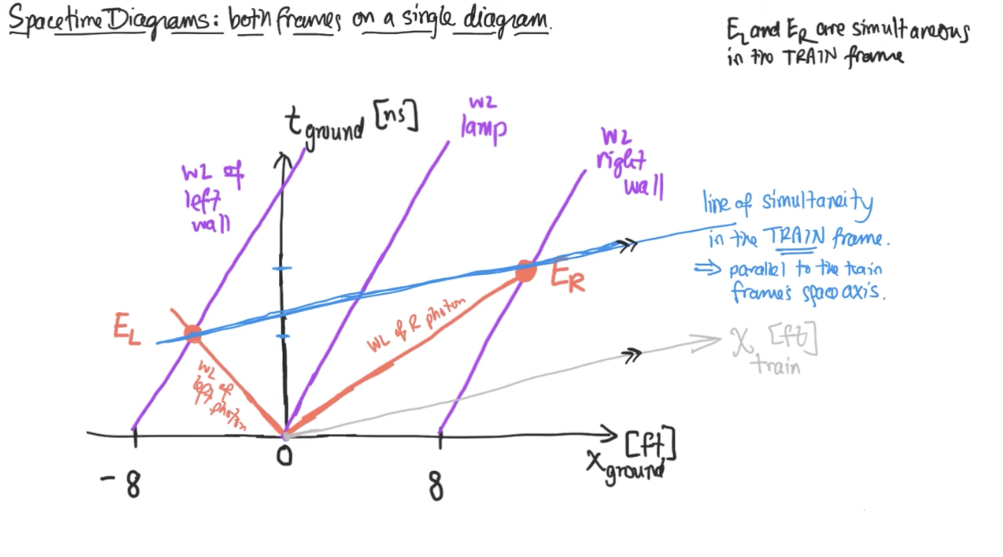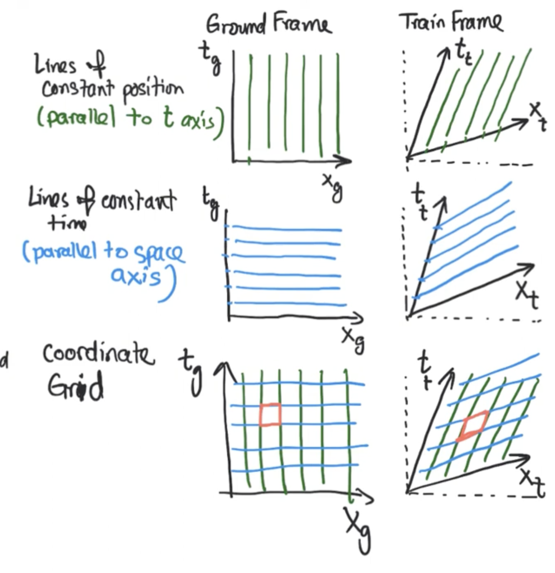 Note that , , , and are all different in each reference frame.