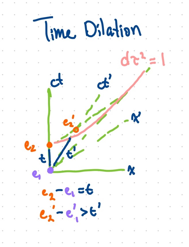 The key invariant is the spacetime interval between any two events stays the same, like how the distance between two points on a curved 2D surface is the same regardless of what coordinate system you use to measure it1: